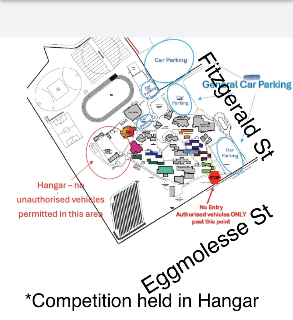 **The HANGAR is where the competition will be held (there are changerooms, showers and plenty of toilet facilities available for your use). All of the canteen services and weigh in room, are all at the HANGAR (large covered sports courts).